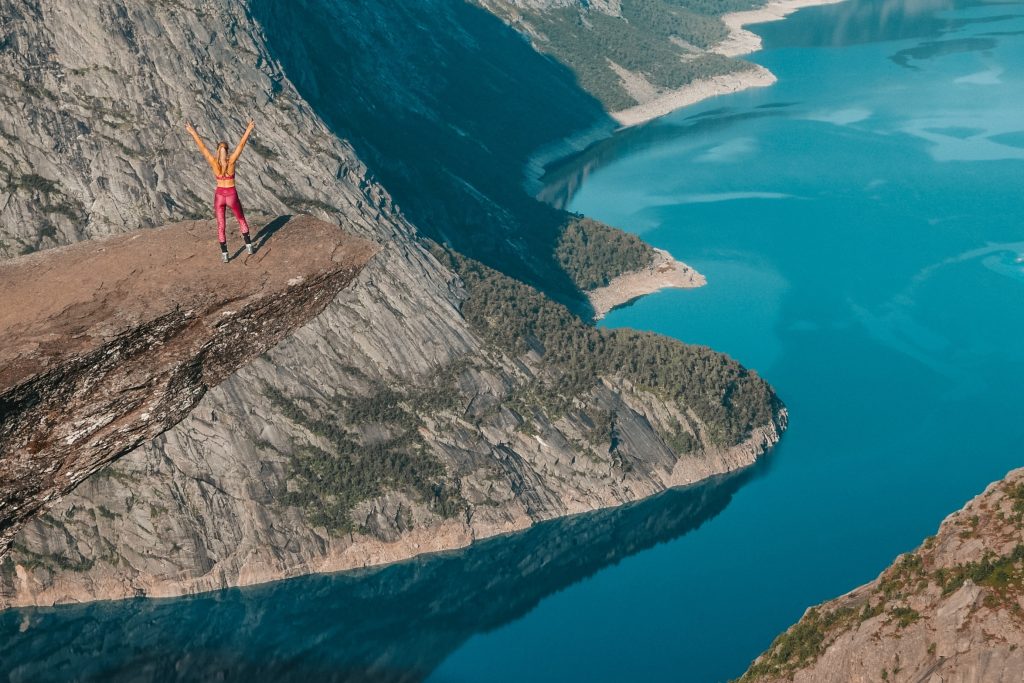 Trolltunga (Troll’s Tongue in English) is a rock formation sticking out from a cliff where people stand in line for hours to take the insta-worthy photo. What makes Trolltunga so popular, besides the interesting shape, is the angle of the rock – if you catch it from the right perspective, it looks scary AF. There is however another “fun fact” about Trolltung: the hike is described as challenging and it takes 10-12 hours.